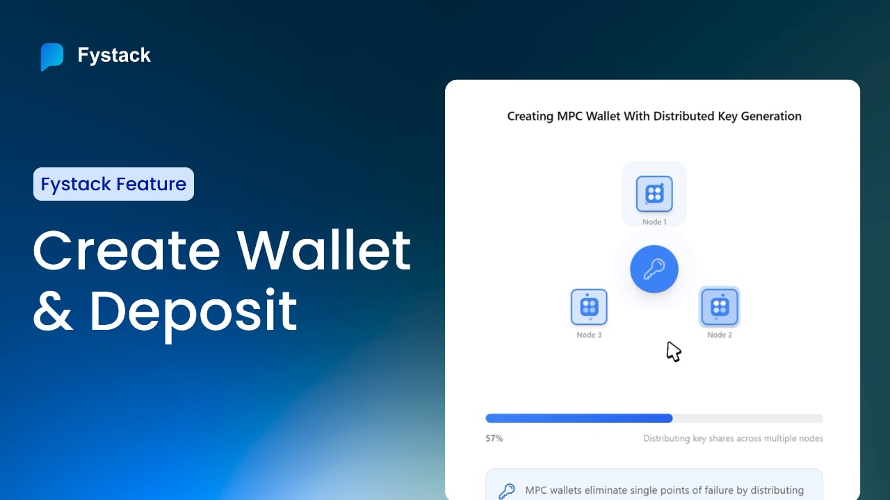 For production use, Fystack supports MPC wallets, which distribute signing authority across multiple cryptographic shares. No single private key ever exists.