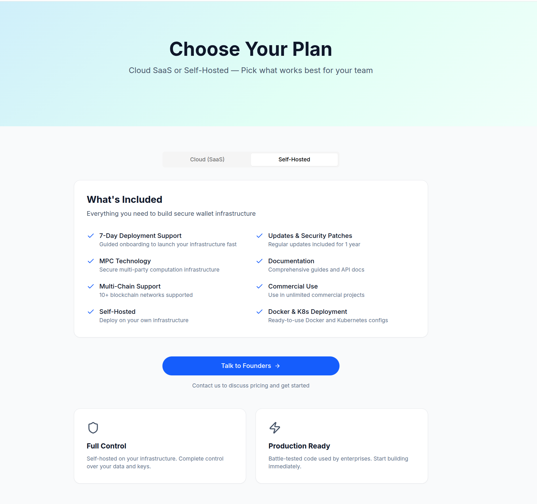 You own the infrastructure, decide where your keys live, and integrate MPC directly into your own stack without vendor lock-in or opaque pricing.